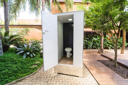 - Vaso sanitário importado de baixo consumo com descarga (selado e sem cheiro);